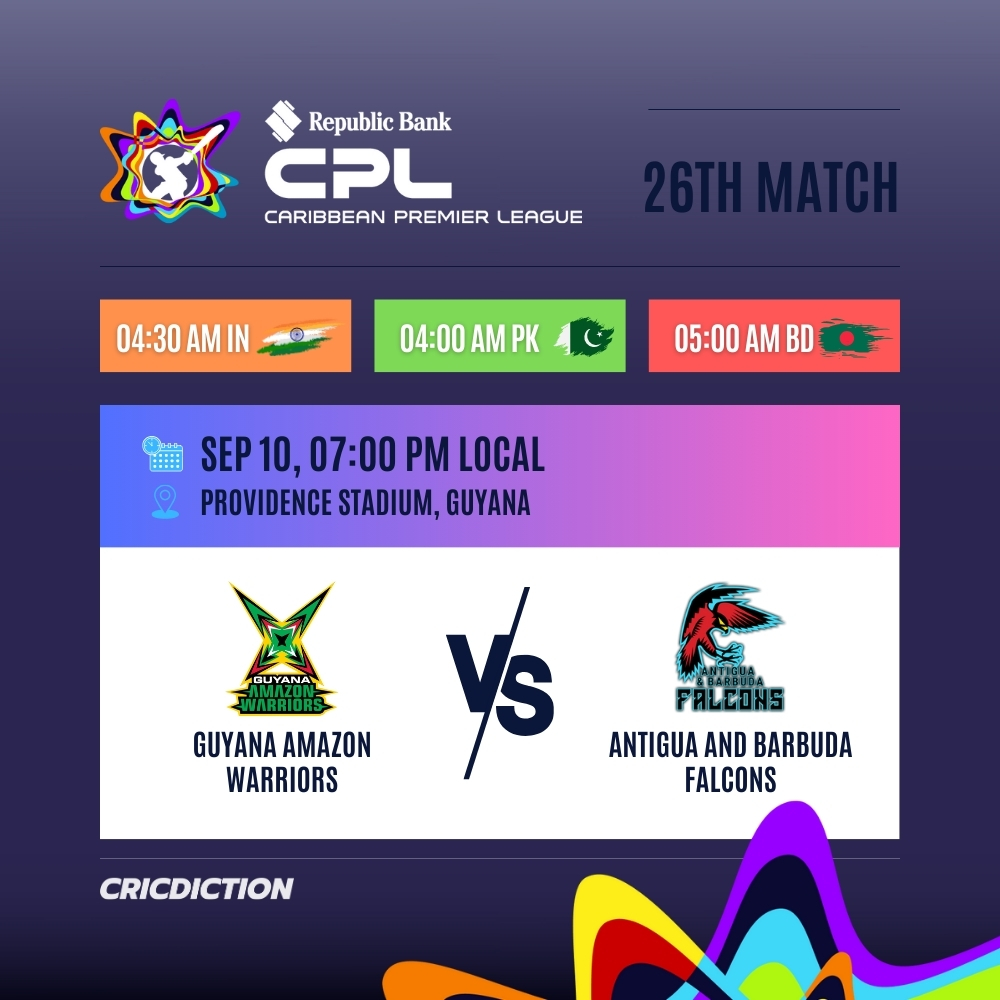 Guyana Amazon Warriors to Face off Against Antigua and Barbuda Falcons in CPL 2025 The Guyana Amazon Warriors (GUY) are […]