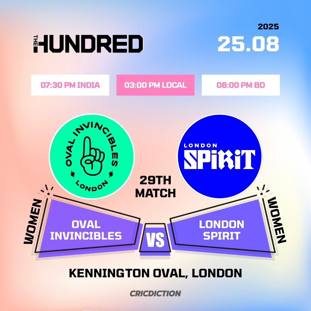 Match Details: Match: Oval Invincibles Women vs London Spirit Women( OI-W vs LS-W ), 29th Match, The Hundred Women’s Competition 2025 […]