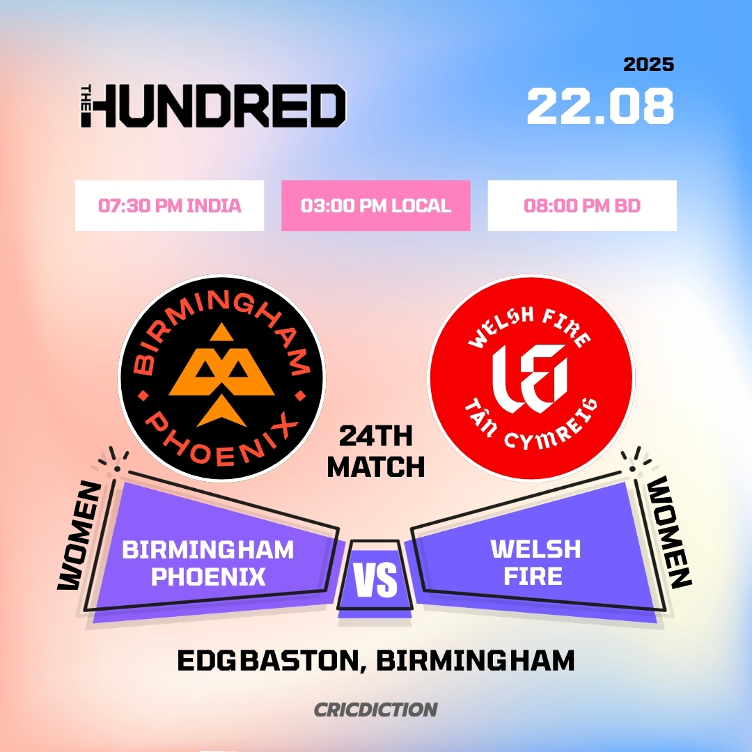 Match Details: Match: Birmingham Phoenix Women vs Welsh Fire Women( BP-W vs WF-W ), 24th Match, The Hundred Women’s Competition 2025 […]