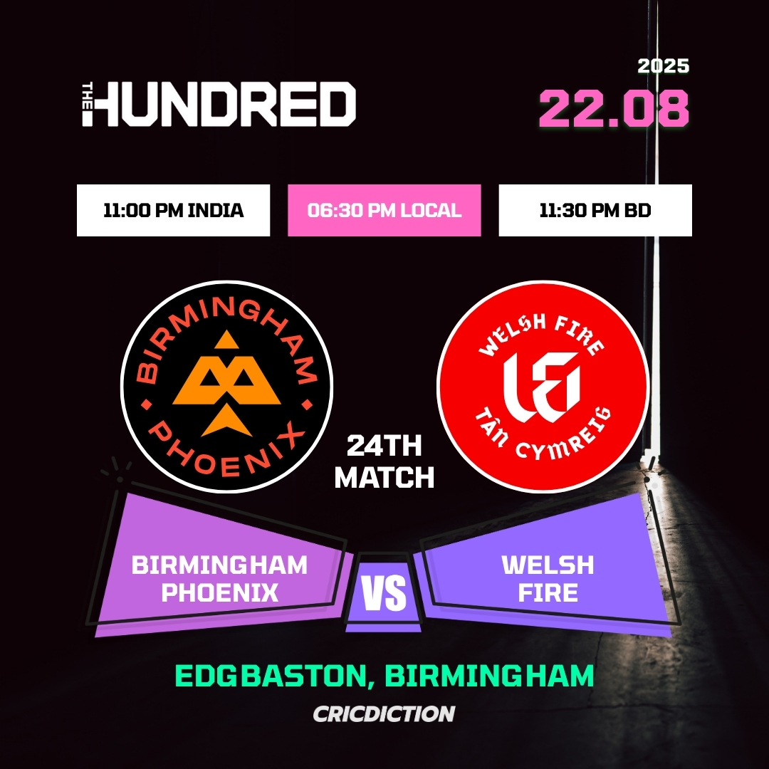 Match Details: Match: Birmingham Phoenix vs Welsh Fire( BP vs WF ), 24th Match, The Hundred Mens Competition 2025 Date and […]